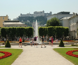 Ao passar pelos jardins do Palácio Mirabell, você não resistirá a uma foto na escada onde a noviça e os sete filhos do capitão Von Trapp cantaram Dó-Ré-Mi. Lá, eles também circulam em torno da fonte do Pégaso e dançam pelos maravilhosos canteiros desenhados com flores coloridas. Essa cena de A Noviça Rebelde em Salzburgo é inesquecível!
